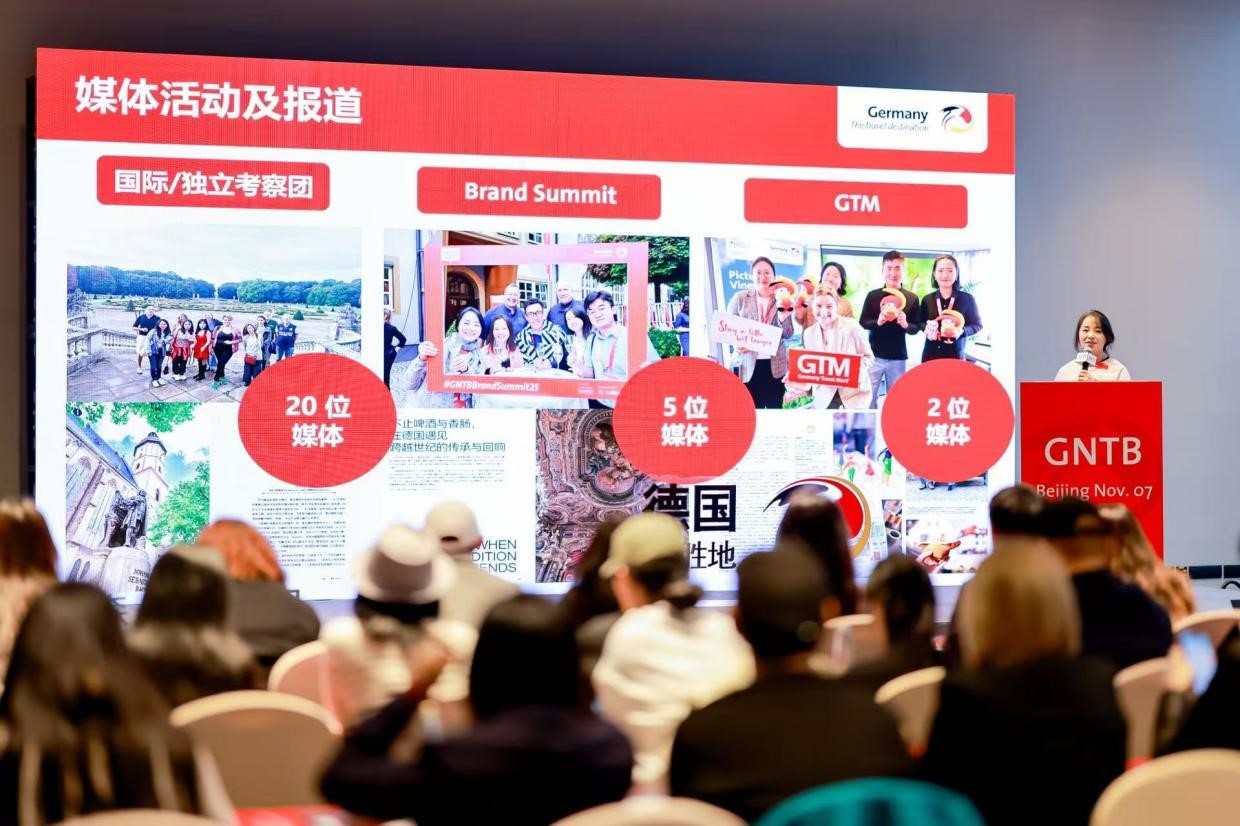 分享會(huì)伊始,德國(guó)國(guó)家旅游局北京辦事處首席代表李朝暉女士向到場(chǎng)嘉賓致歡迎辭,并簡(jiǎn)要回顧了2025年中國(guó)市場(chǎng)的亮眼表現(xiàn)。根據(jù)德國(guó)聯(lián)邦統(tǒng)計(jì)署的數(shù)據(jù),2024年中國(guó)游客入境德國(guó)旅游的間夜數(shù)已達(dá)183萬(wàn),較上一年增長(zhǎng)了40.5%,2025年1月至8月中國(guó)赴德間夜數(shù)為118萬(wàn),航班量恢復(fù)至每周93班,簽證申請(qǐng)流程亦大幅優(yōu)化。李朝暉表示“中國(guó)游客對(duì)德國(guó)的興趣正穩(wěn)步回升。我們看到越來(lái)越多的年輕游客更關(guān)注文化、自然與可持續(xù)旅行體驗(yàn)。未來(lái),德國(guó)國(guó)家旅游局將通過(guò)AI賦能內(nèi)容營(yíng)銷、短視頻創(chuàng)意傳播與跨平臺(tái)互動(dòng),讓‘德國(guó)制造’的文化與美學(xué)在中國(guó)市場(chǎng)煥發(fā)新的生命力?!?/p>